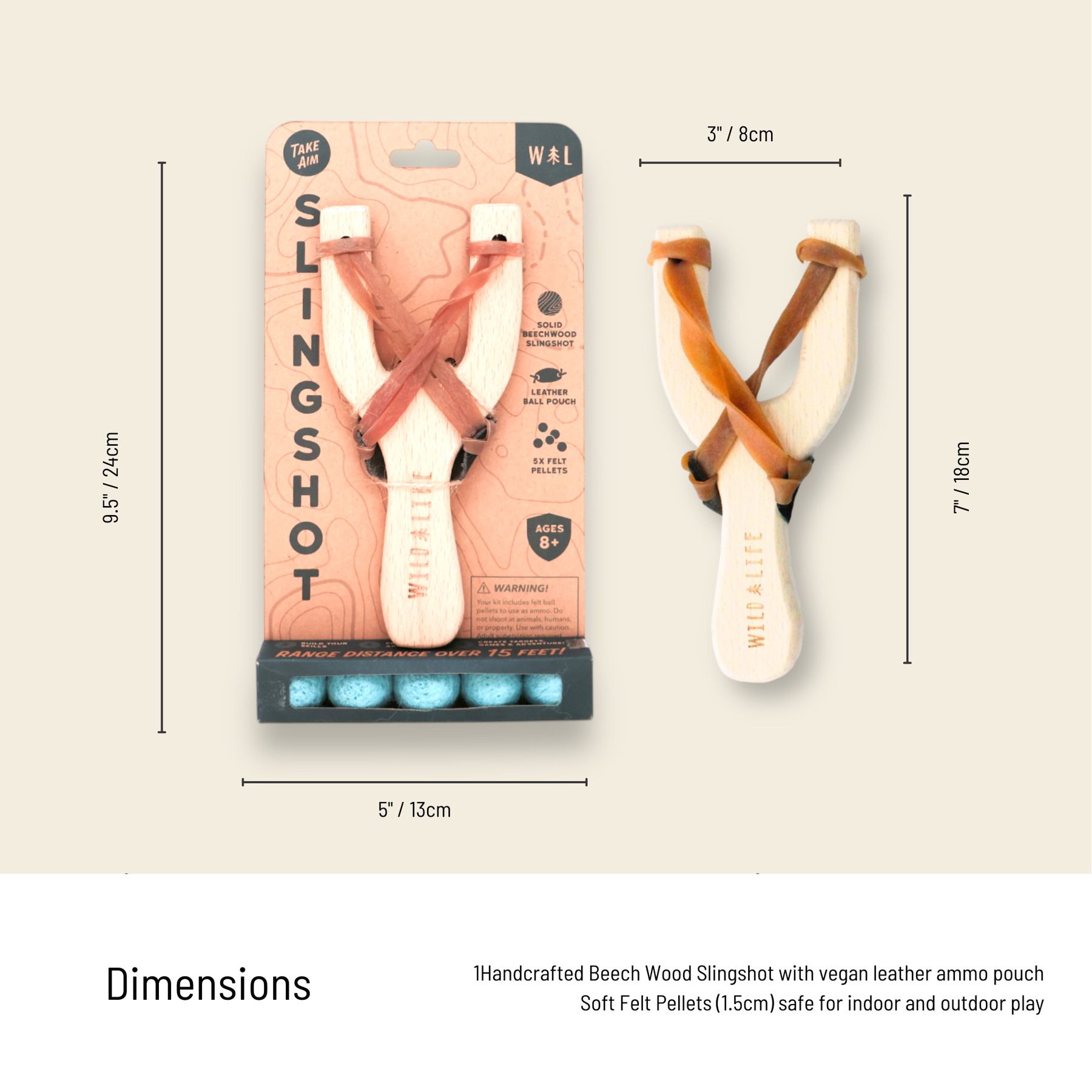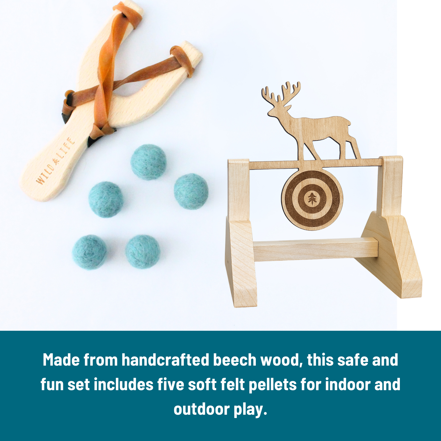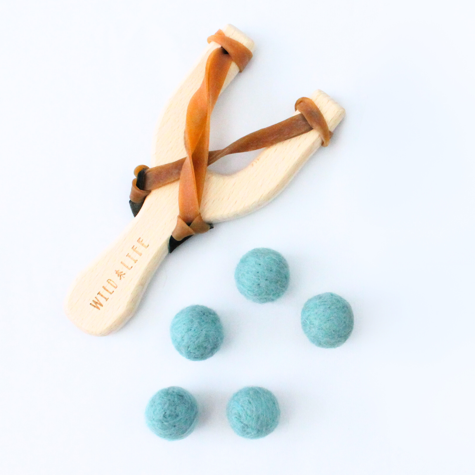 At Wild Life, we believe in tools and toys that inspire real-world play. Slingshots have been a childhood classic for generations—but we wanted to make a version that’s safe, fun, and skill-building for modern adventurers. By pairing a handcrafted wooden slingshot with soft felt pellets and a rotating target, we created an experience that encourages focus, coordination, creativity, and confidence—without screens, batteries, or boredom.